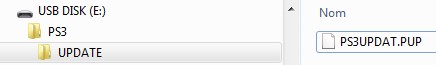 Dans le dossier PS3 mettre un dossier UPDATE puis le fichier PS3UPDAT.PUP